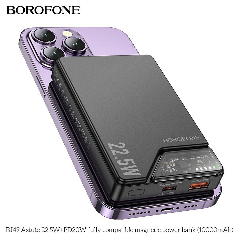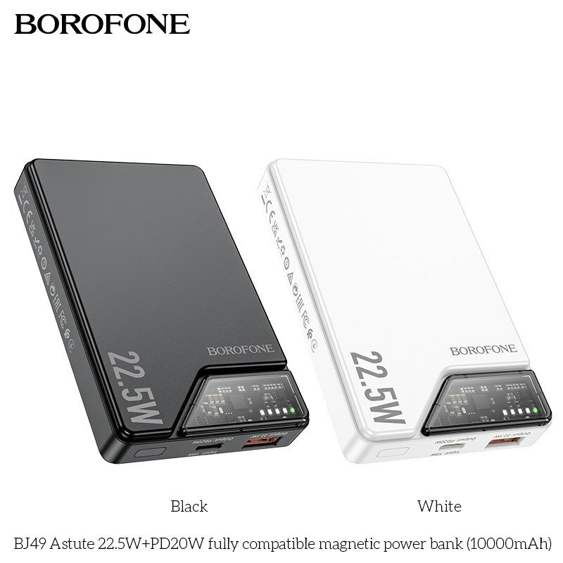 Магнитный Power Bank Borofone BJ49 Astute 22,5 Вт+PD20 Вт (10000 мАч), белый: сравнение цен, характеристики, фото, актуальное наличие и цены.