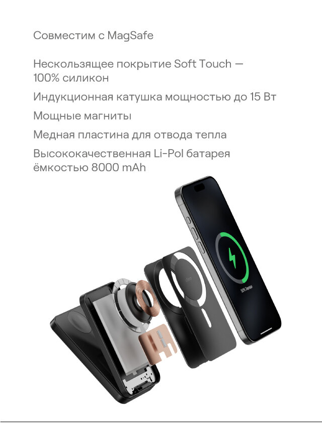 Магнитный powerbank 3 в 1 uBear Cruise 8000 mAh, PD20W, с поддержкой зарядки Apple Watch, цвет: черный: сравнение цен, характеристики, фото, актуальное наличие и цены.
