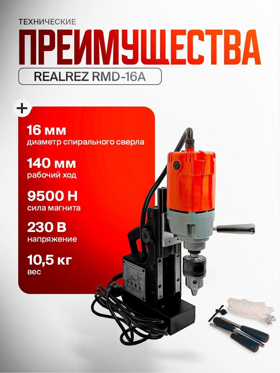 Магнитный сверлильный станок REALREZ RMD16A 900W: сравнение цен, характеристики, фото, актуальное наличие и цены.