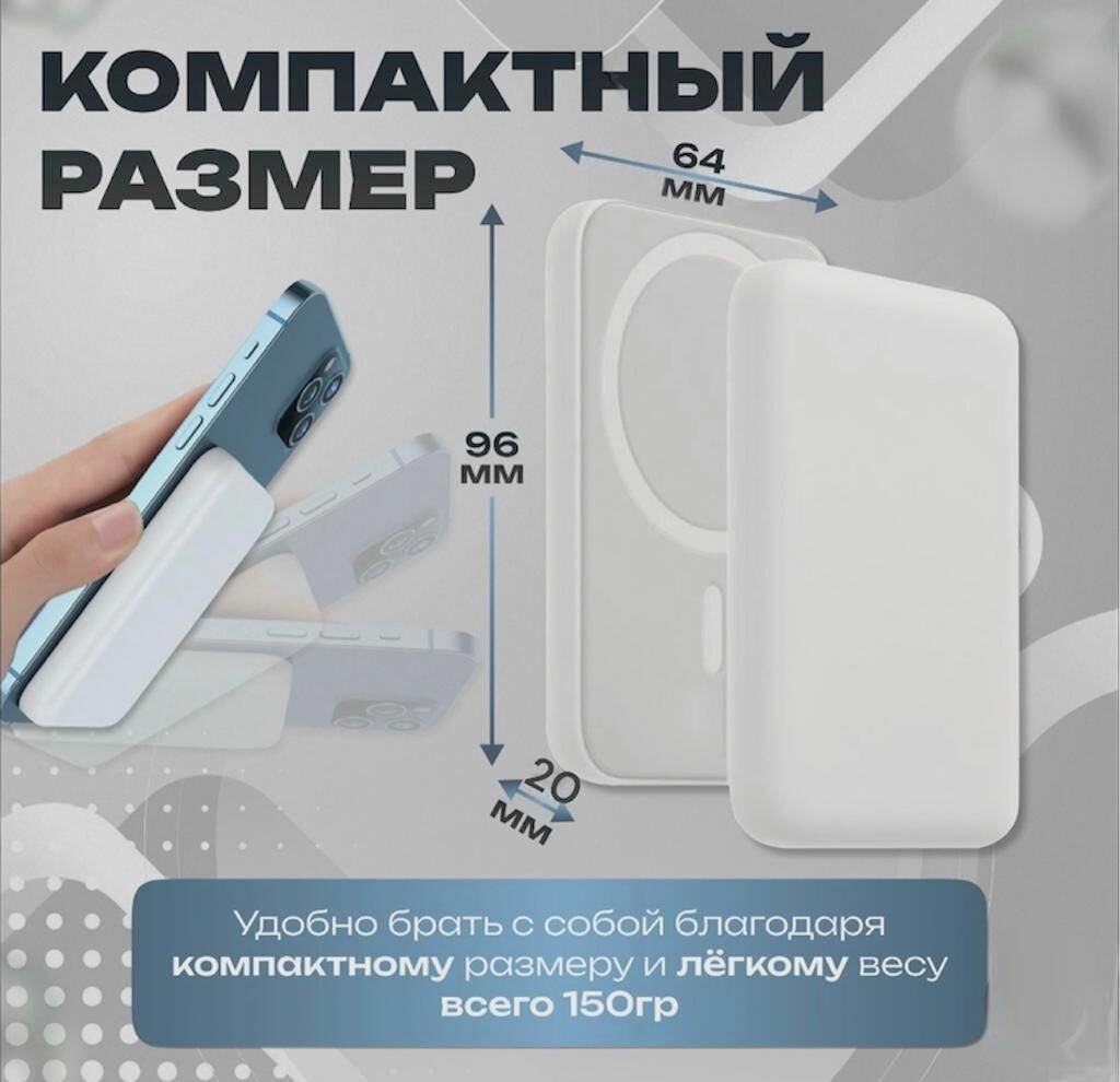 Представляем вашему вниманию внешний аккумулятор Magsafe с ёмкостью 5000 мАч в стильном белом цвете. Этот аксессуар станет незаменимым помощником для пользователей, которые ценят мобильность и комфорт. Благодаря компактным размерам, вы сможете взять его с собой куда угодно – в поездки, на прогулки или в офис.