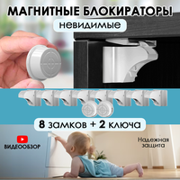 Купить Магнитные блокираторы дверей и ящиков детские невидимые, набор 8 замков и 2 ключа для мебели от детей, Hangwoods с доставкой по всей России.