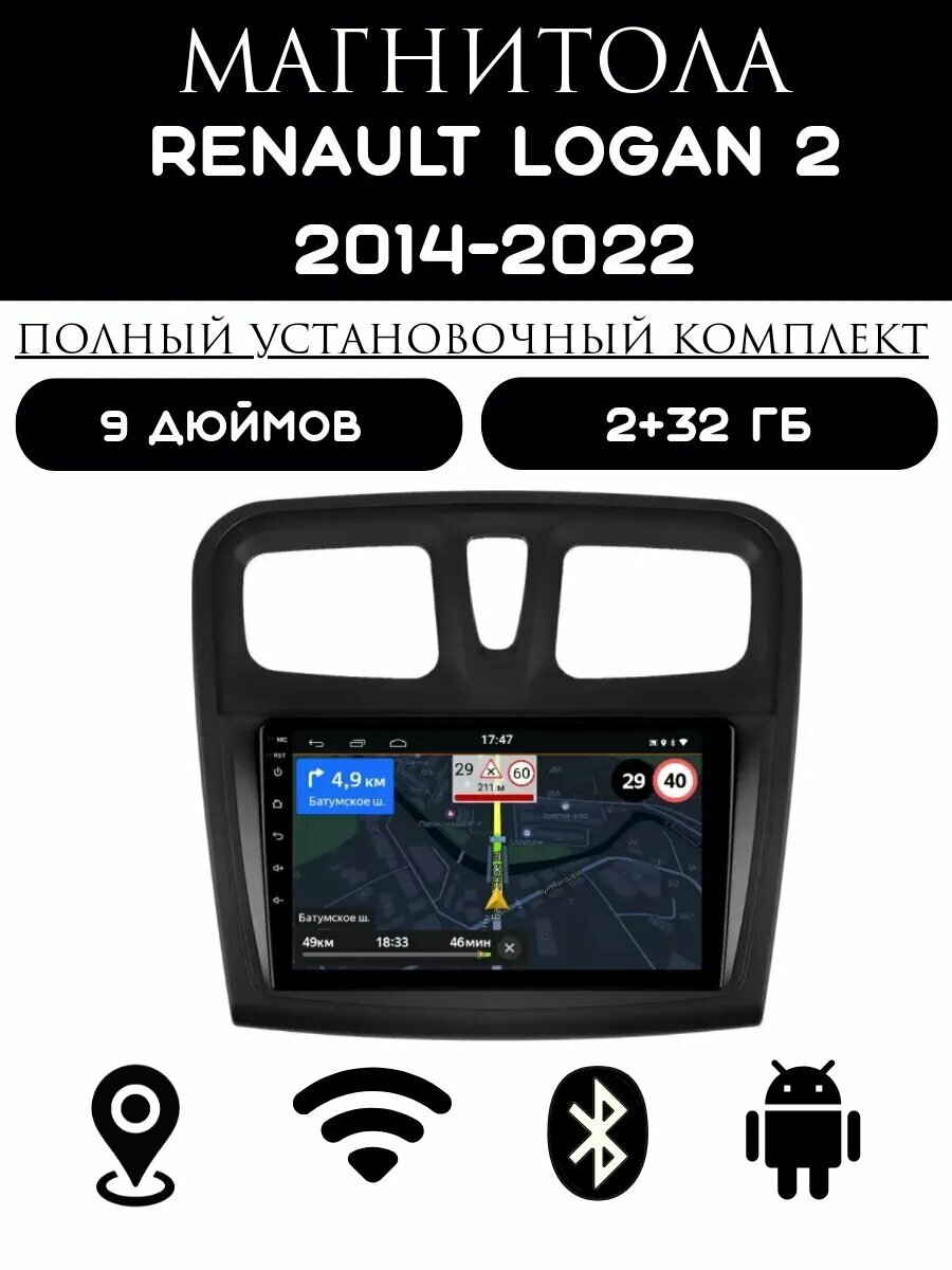 Купить Магнитола 2din 9 дюймов для автомобиля Renault Logan 2, 2+32GB, Android 11, Bluetooth, 4G с доставкой по всей России.