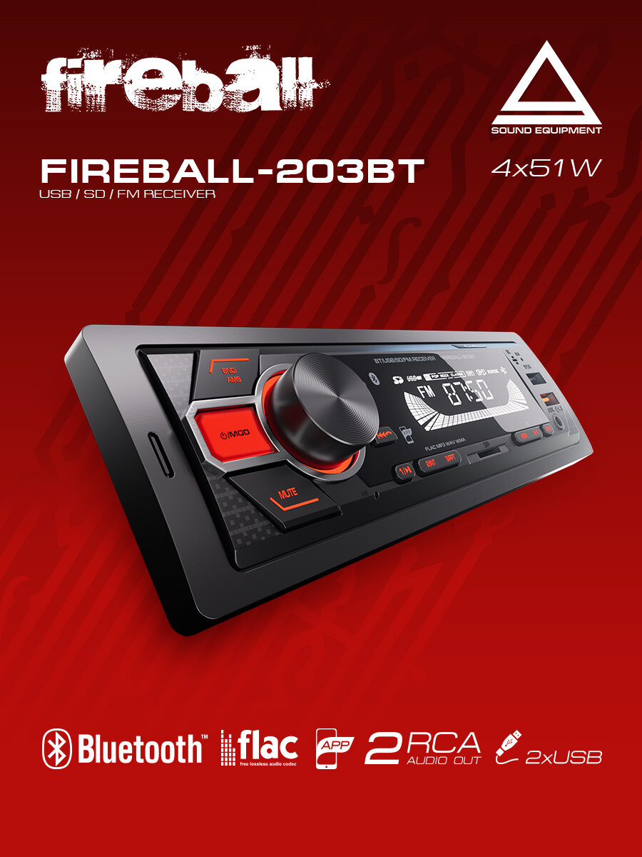 Купить Автомобильный USB/BT-ресивер Aura FIREBALL-203BT, 1DIN, Bluetooth, красная подсветка с доставкой по всей России.