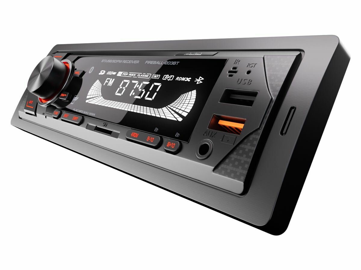 Автомобильный USB/BT-ресивер Aura FIREBALL-203BT, 1DIN, Bluetooth, красная подсветка