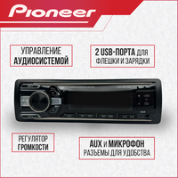 Магнитола автомобильная, автомагнитола 1 дин Pioneer DEH-MP 7850, автомагнитола USB, AUX на передней панели, автомагнитола с блютуз, подсветка