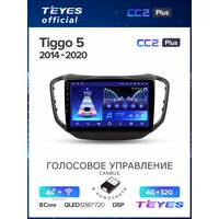 Магнитола Chery Tiggo 5 2014 — 2018 Teyes CC2+ 4/32GB, штатная магнитола, 8-ми ядерный процессор, QLED экран, DSP, 4G, Wi-Fi, 2 DIN