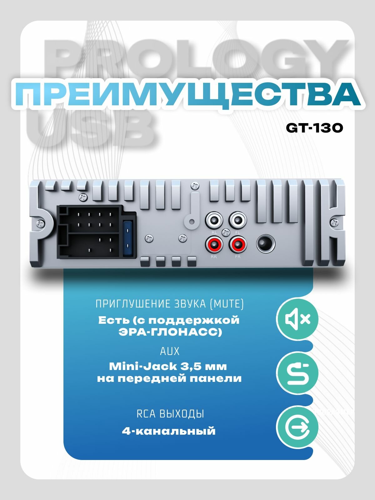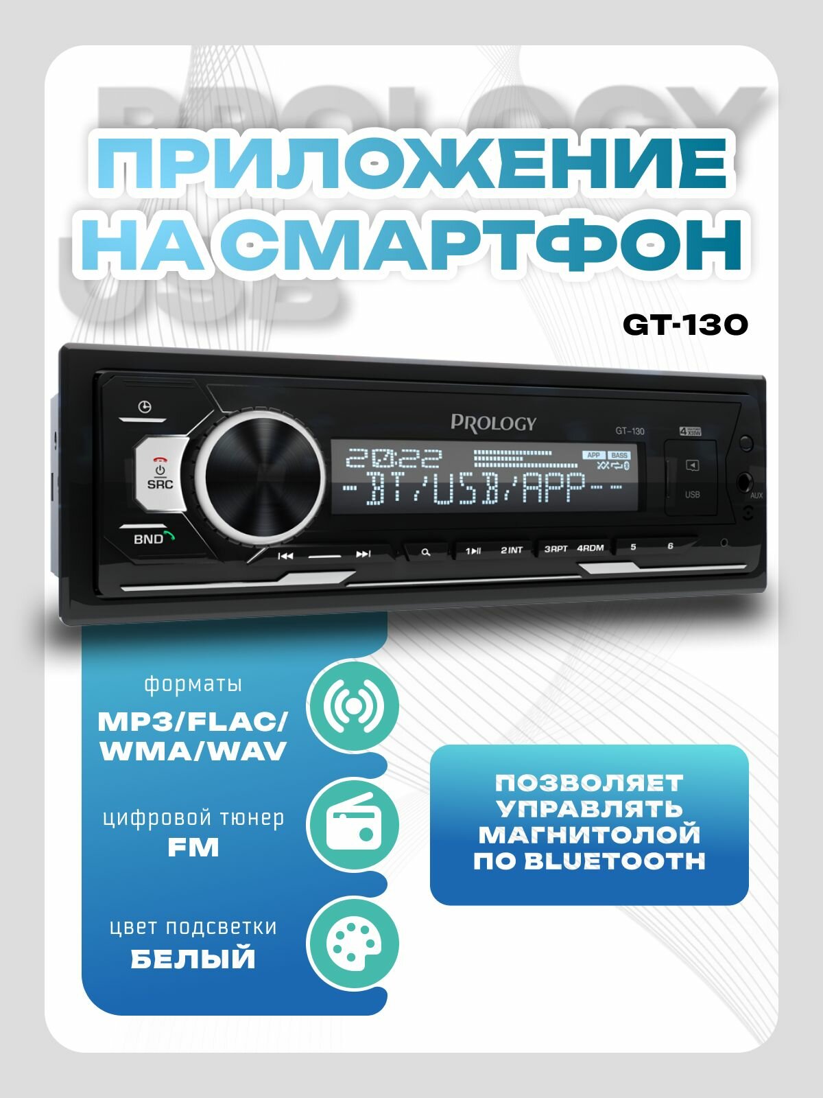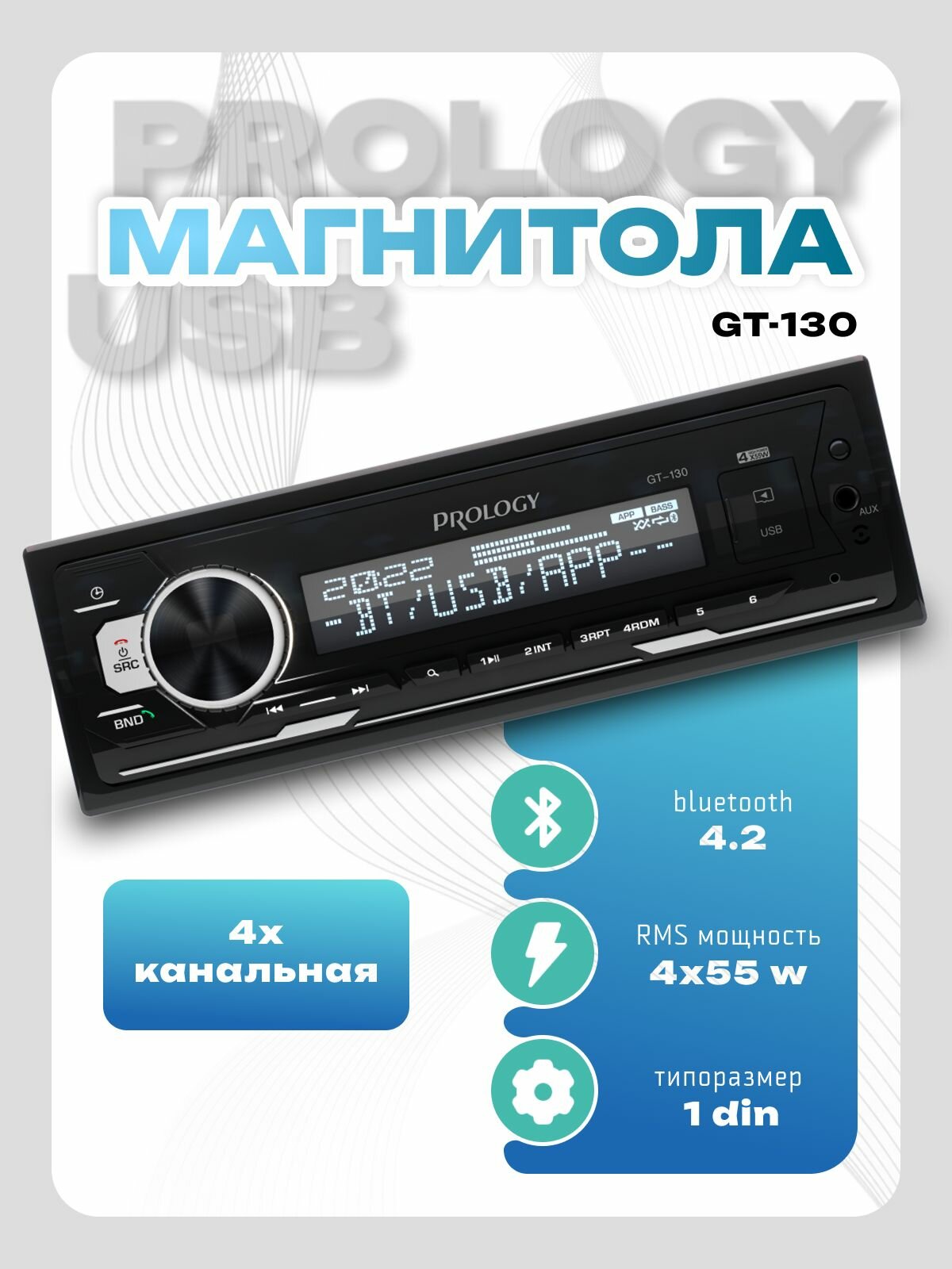 Магнитола для авто с блютуз PROLOGY GT-130 SD/USB/Bluetooth (белая подсветка) 4х55Вт: сравнение цен, характеристики, фото, актуальное наличие и цены.