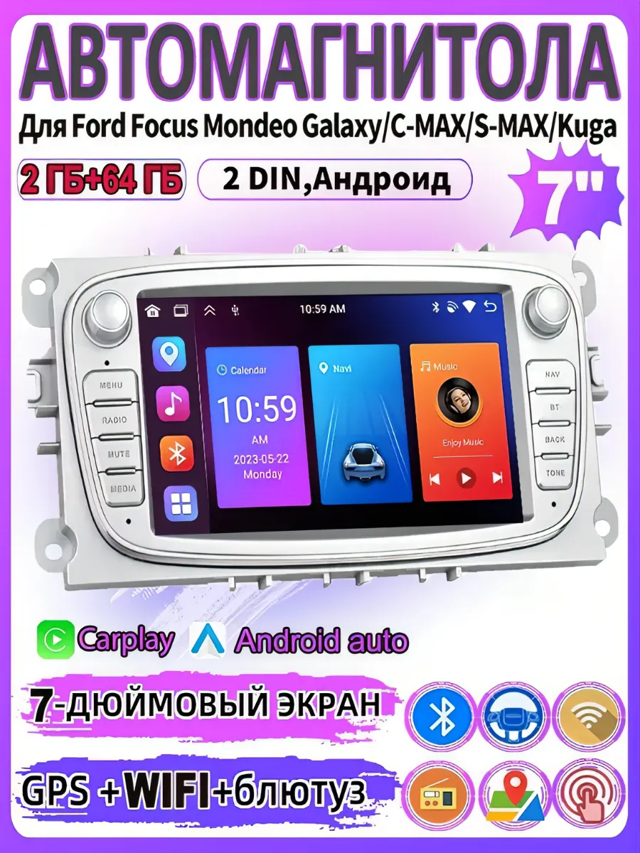 Магнитола, для Ford Focus/Mondeo/S-MAX/Galaxy/C-MAX/Kuga, 2+64G: сравнение цен, характеристики, фото, актуальное наличие и цены.