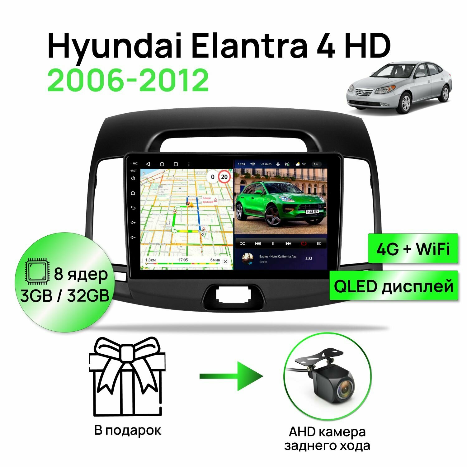 Магнитола для Hyundai Elantra 4 HD 2006-2012, 8 ядерный процессор 3/32Гб ANDROID 11, QLED экран 9 дюймов, Carplay, автозвук DSP, Wifi, 4G