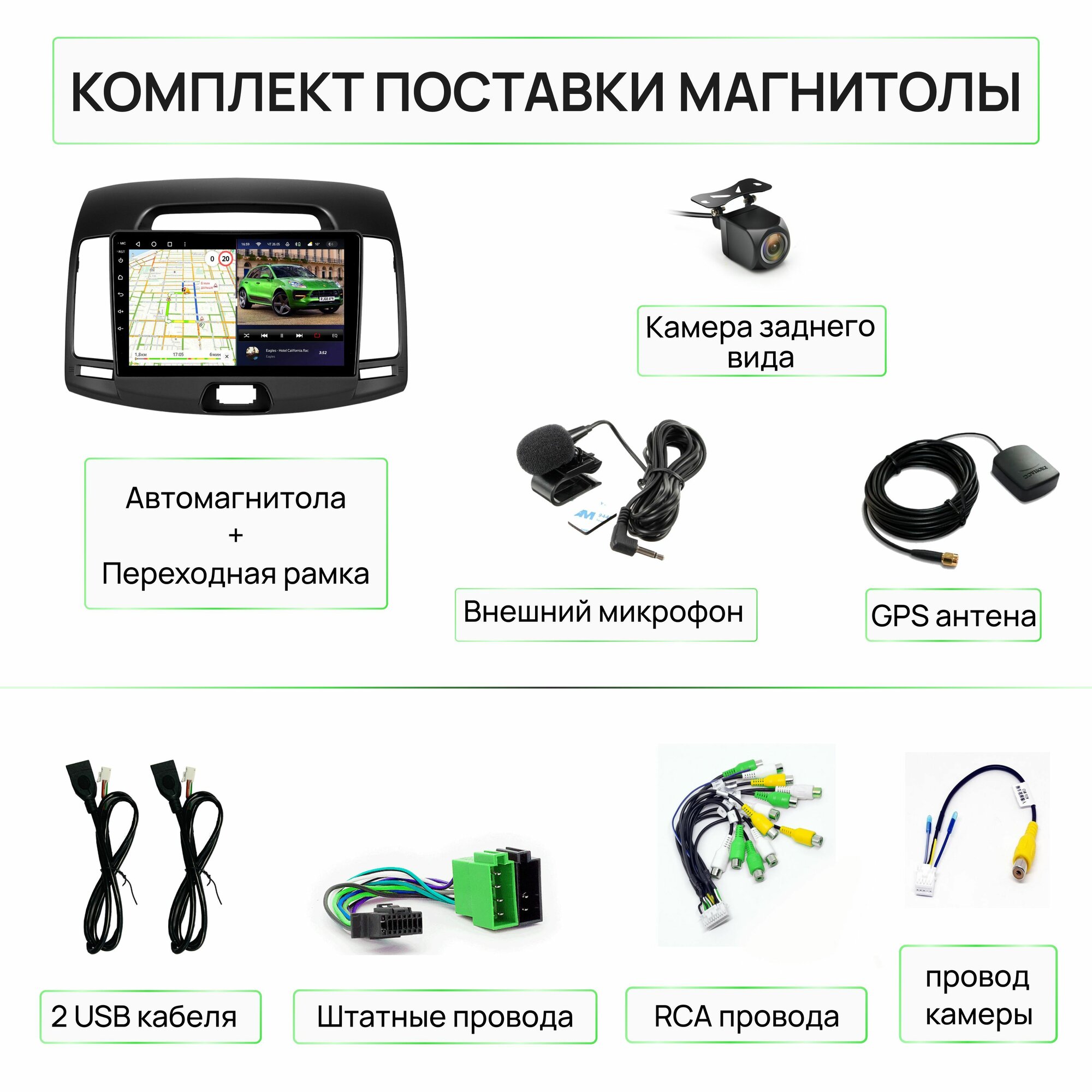 Рамка + Дисплей + Комплектные провода к дисплею и автомобилю + Камера заднего вида