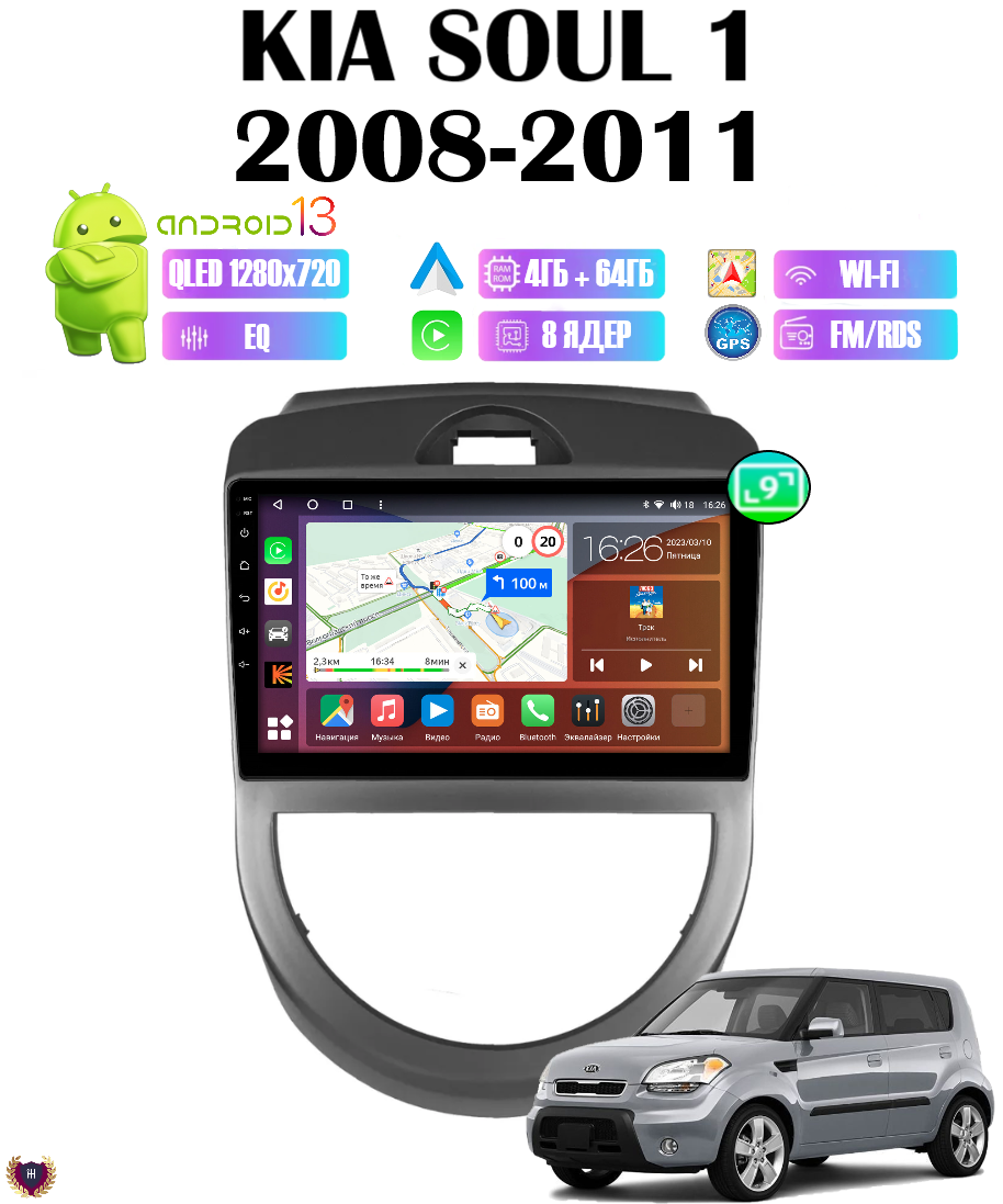 Магнитола для Kia Soul 1/Киа Соул 1 (2008-2011), 4/64 GB, Android 13, Bluetooth, WiFi, CarPlay, Android Auto, 8 ядерный процессор + переходная рамка: сравнение цен, характеристики, фото, актуальное наличие и цены.