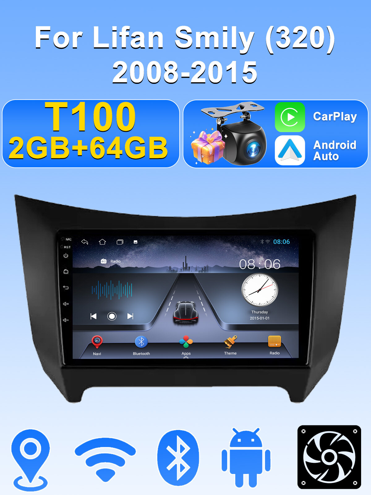 Купить Магнитола для Lifan Smily (320) 2008-2015 , Автомагнитола для Лифан 320,2din android 2+64G Мультимедиа Bluetooth FM WIFI Автомобильный с доставкой по всей России.