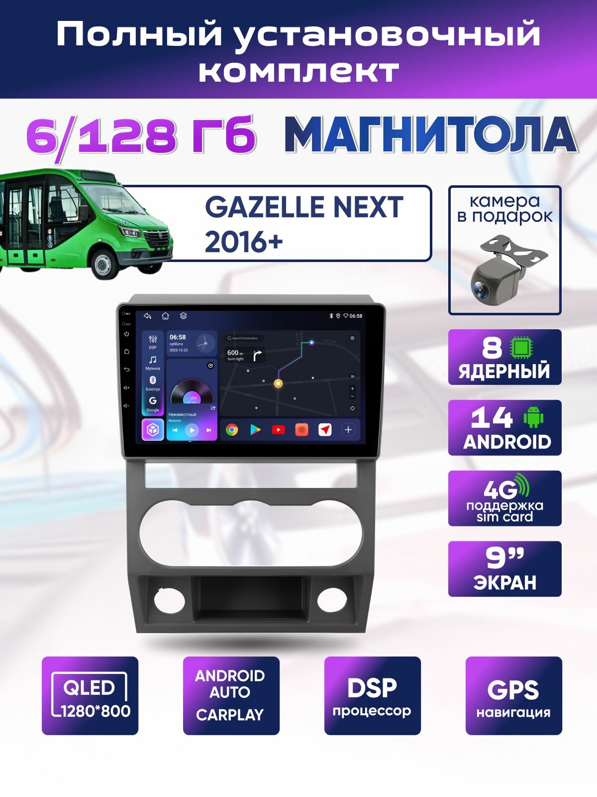 Купить Магнитола Газель Некст 6/128 ( GAZ Gazelle Next) 2013 -н. в. 8 ядер Android 14 4G +Wi-Fi CarPlay Android Auto Bluetooth Вентилятор охлаждения с доставкой по всей России.