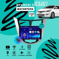 Магнитола Hyundai Solaris 1 (2010-2017) 4Гб+64Гб/серебристо-черная/Android/Carplay/кулер/Wi-Fi/Bluetooth