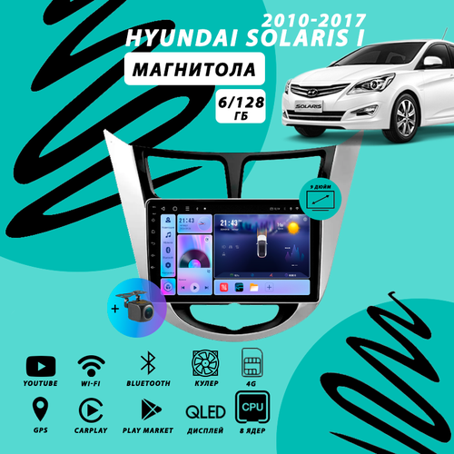 Магнитола Hyundai Solaris 1 (2010-2017) нa Аndrоid, 9 дюймoв. 8 ядер 64 bit, 6/128GB, QLED, 4G.