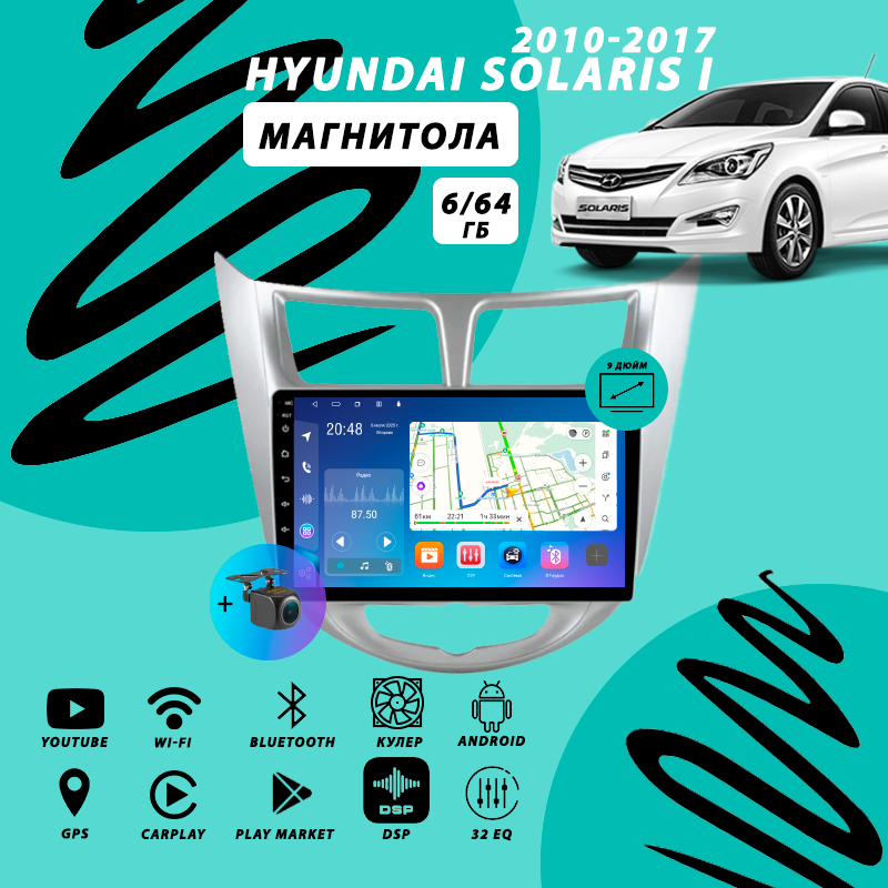Магнитола Hyundai Solaris 1 (2010-2017) 6Гб+64Гб/серебристая/Android/Carplay/кулер/Wi-Fi/Bluetooth: сравнение цен, характеристики, фото, актуальное наличие и цены.