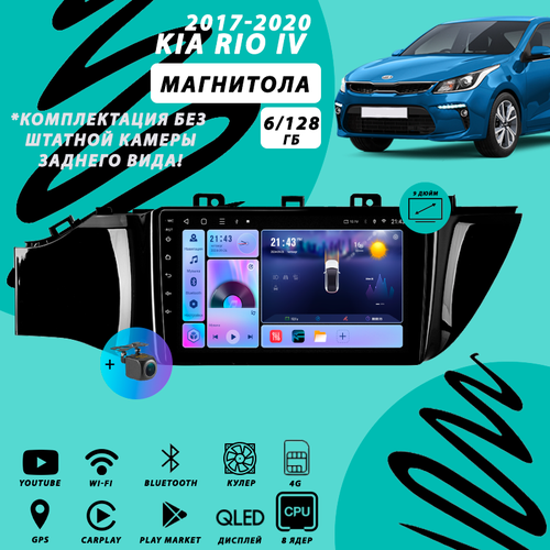 Магнитола Kia Rio 4 (2017-2020) нa Аndrоid, 9 дюймoв. 8 ядер 64 bit, 6/128GB, QLED, 4G.