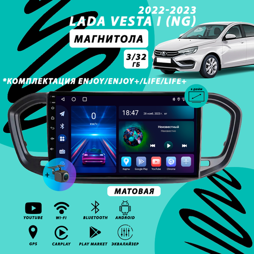 Магнитола Lada Vesta NG (2022-2023) Enjoy/Enjoy+/Life/Life+ (CanBus) 3Гб+32Гб/авто с экраном/матовый/Android