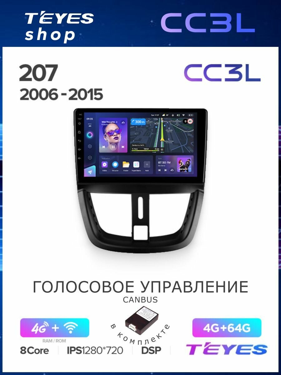 Купить Магнитола Peugeot 207 2006-2015 Teyes CC3L 4/64GB, штатная магнитола, 8-ми ядерный процессор, IPS экран, DSP, 4G, Wi-Fi, с доставкой по всей России.