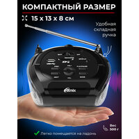 Магнитола RITMIX RBB-100BT black-silver, FM (87,5–108 МГц), Bluetooth 4.0, USB и SD до 32 ГБ, AUX, встроенный аккумулятор: сравнение цен, характеристики, фото, актуальное наличие и цены.