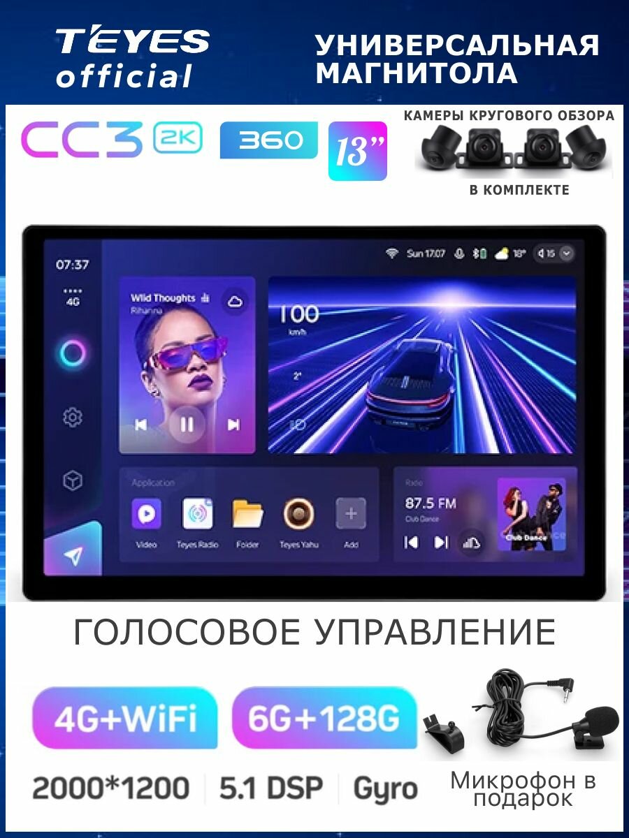 Купить Магнитола Teyes CC3 2K 360 6/128GB Универсальная 13 дюймов, Круговой обзор 360, 8-ми ядерный процессор, QLED экран, 2 DSP, 4G, Wi-Fi, 2 DIN с доставкой по всей России.