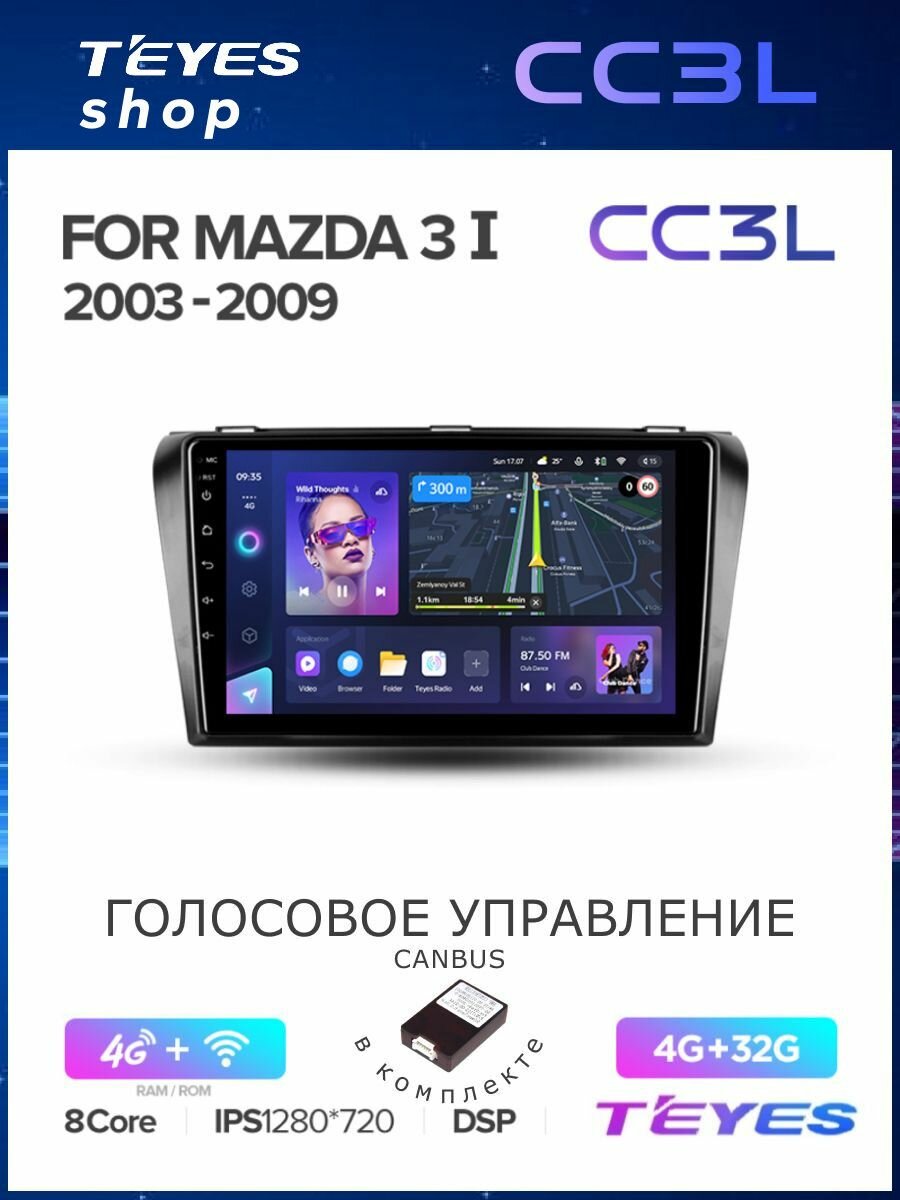 Магнитола Teyes CC3L 4-32 для Mazda 3 1 BK 2003-2009 9.0" - это современное, функциональное и удобное устройство, которое сделает вашу поездку комфортной и приятной.