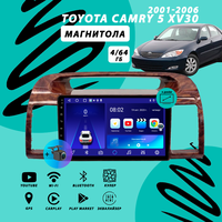 Магнитола Toyota Camry 5 XV30 (2001-2006) 4Гб+64Гб/красное дерево/Android/Carplay/кулер/Wi-Fi/Bluetooth