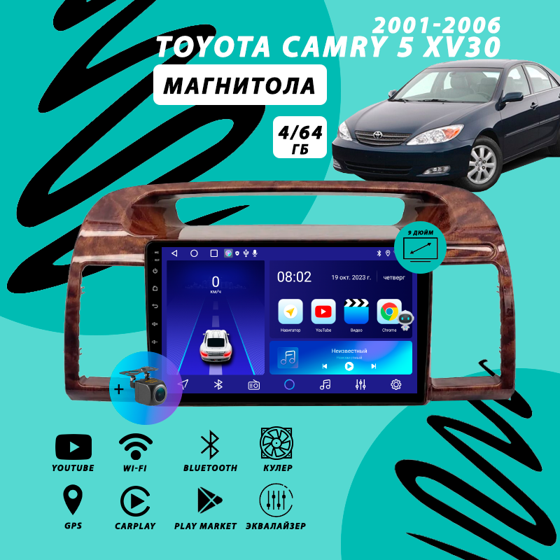 Магнитола Toyota Camry 5 XV30 (2001-2006) 4Гб+64Гб/красное дерево/Android/Carplay/кулер/Wi-Fi/Bluetooth: сравнение цен, характеристики, фото, актуальное наличие и цены.