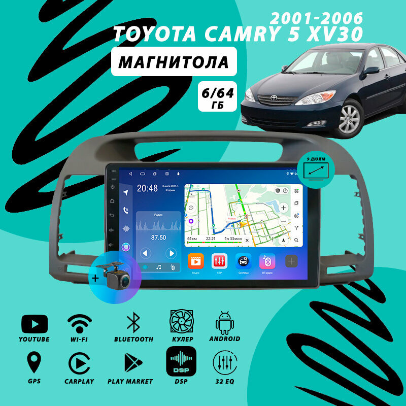 Магнитола Toyota Camry 5 XV30 (2001-2006) 6Гб+64Гб/Android/Carplay/кулер/Wi-Fi/Bluetooth: сравнение цен, характеристики, фото, актуальное наличие и цены.