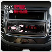 | Дополнительная информация | Сенсорные кнопки – Приложение SmartBT iPlug даёт возможность управлять магнитолой и настраивать эквалайзер через смартфон – Включение голосового помощника смартфона с помощью кнопки – Магнитола выпускается в двух цветах подсветки: красном и синем – 2 пары RCA выходов позволяют использовать 4 канала для усиления звука – 2 USB порта дают возможность слушать музыку с накопителя и заряжать смартфон одновременно – Литой радиатор позволяет магнитоле работать продолжительное время на максимальной мощности |