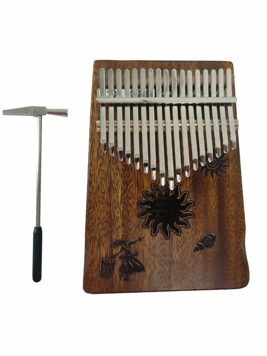 Калимба обладает насыщенным и теплым звучанием. Инструмент имеет 17 язычков из нержавеющей стали, которые легко поддаются настройке. Модель поставляется в комплекте с прочной сумкой и молоточком. Компактный размер делает калимбу идеальным инструментом для путешествий.