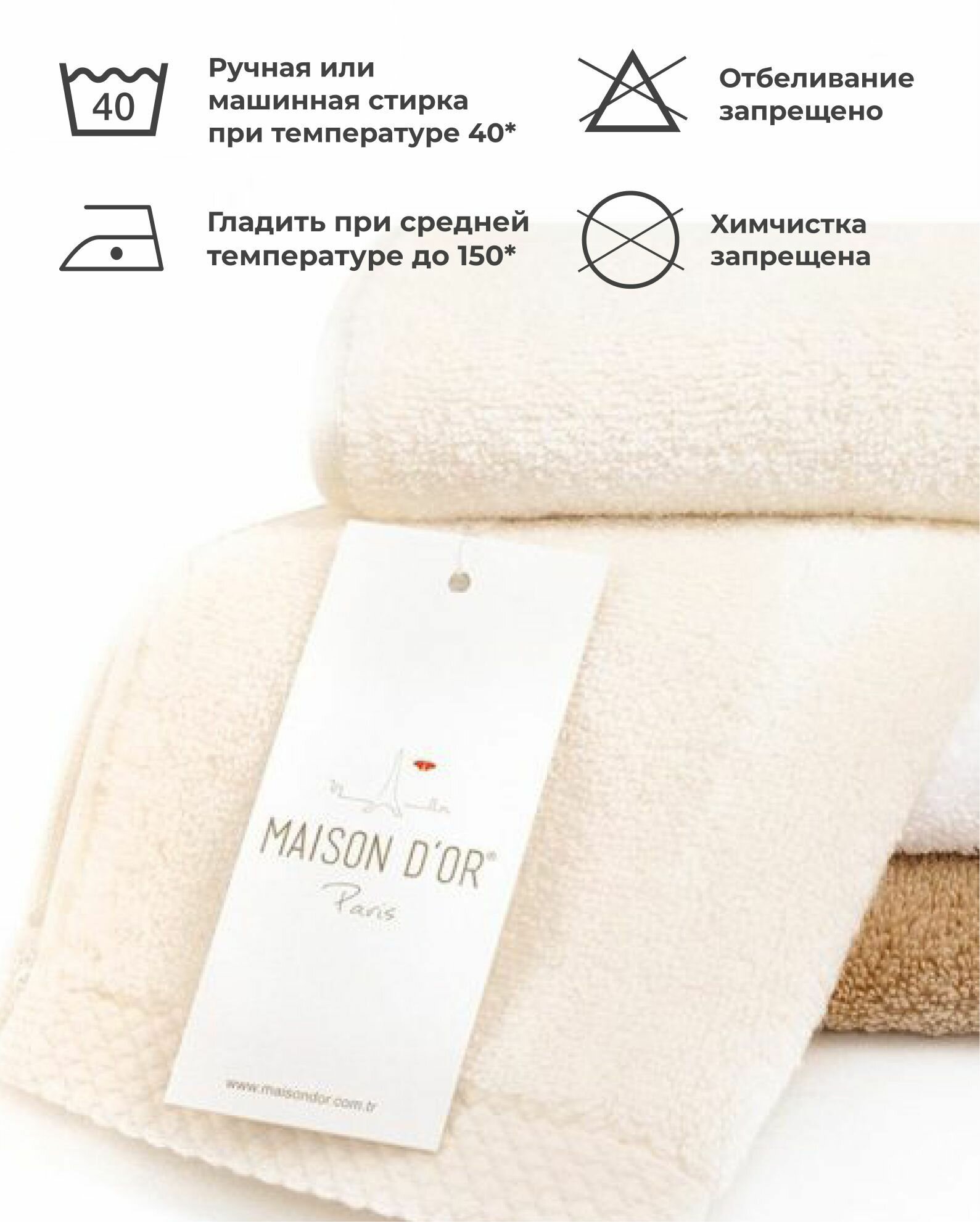 Мягкие, пушистые махровые полотенца Maison Dor необходимый и полезный аксессуар для любой ванной комнаты. Богатая цветовая палитра позволит вам выбрать полотенце на любой вкус и настроение. Полотенца обладают уникальными гигроскопическими свойствами и хорошо впитывают влагу. Быстро высушивают и согревают тело. Материал гипоаллергенный, подходит для людей с чувствительной кожей. Каждое изделие проходит влаго-термическую обработку. Полотенца отличаются повышенной прочностью, устойчивостью к частой стирке, не теряют своего первоначального вида и цвета, не грубеют и не садятся, остаются объемными и пушистыми.