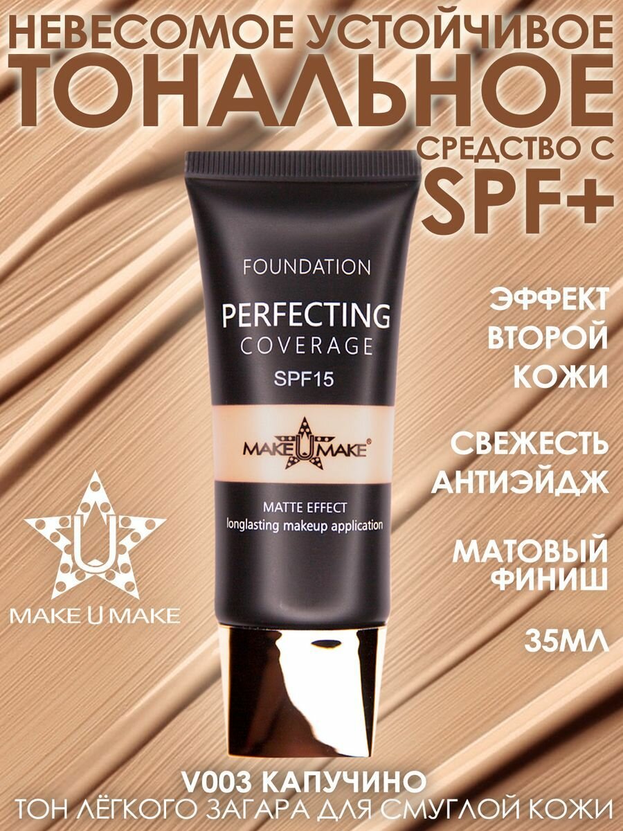 MAKE U MAKE Тональное стойкое средство LINGERIE MATT FINISH с SPF защитой — оттенок 03 Капучино оттенок легкого загара для слегка смуглой или загарелой кожи, V003
