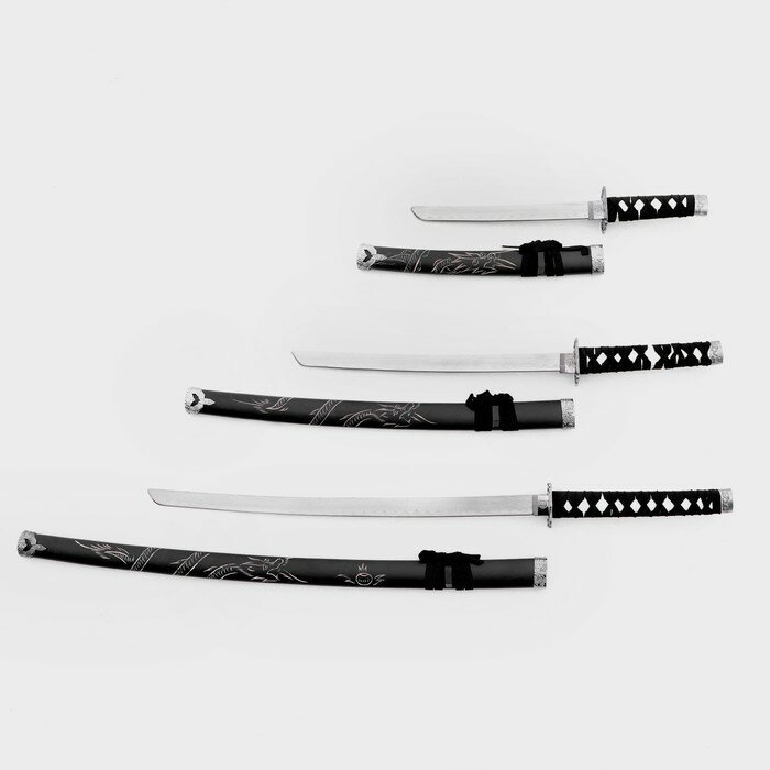 Купить Макет оружия «Сувенирные катаны на подставке 3в1. Чёрный дракон», подарочный набор, ножны дерево, 51 см; 71 см; 100 см с доставкой по всей России. Макет оружия «Сувенирные катаны на подставке 3в1. Чёрный дракон», подарочный набор, ножны дерево, 51 см; 71 см; 100 см: сравнение цен, характеристики, фото, актуальное наличие и цены.