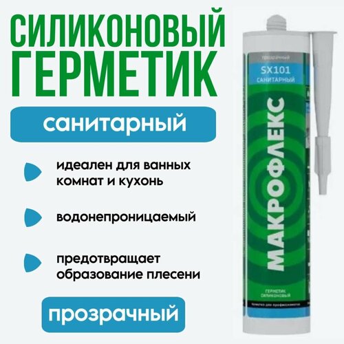 Санитарный силиконовый герметик Makroflex SX101 прозрачный 290 мл используется во влажных помещениях (ванных комнатах, саунах, туалетах и кухнях) для заполнения швов и трещин, во время установки сантехнического оборудования, герметизации окон и дверей.