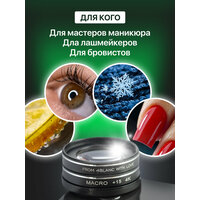 Линза 4BLANC для камеры телефона открывает новые возможности для съёмки фото и видео. Что отличает макролинзу 4BLANC от других макрообъективов: ▪ Не искажает изображение (без широкоугольного эффекта) ▪ Одинаково качественно снимает и фото, и видео 4К ▪ Подходит на любой телефон (даже на смартфоне с тремя камерами) ▪ Сделана из металла и качественной оптики ▪ Имеет защитные крышки как у профессиональной фототехники ▪ Красиво и надёжно упакована ▪ Снимает в двух режимах: макро (4 пальчика в кадре) и супермакро (один пальчик или часть кутикулы) Объектив для телефона подчеркнёт детали основного объекта в кадре и красиво размоет фон, как на снимках с профессионального фотоаппарата. Специальное покрытие стекла обеспечивает реалистичный цвет и четкую картинку. Подходит для любых смартфонов (iPhone, Samsung, Xiaomi, Android, iPad планшетов). Надёжно крепится к телефону с помощью зажима. Основание клипсы с резиновыми вставками для защиты телефона от царапин и прочной фиксации линзы. Два режима использования линзы для фото: 1. Максимальное приближение - съёмка с двумя линзами. 2. Общий план с макрофокусом. Снимите одну линзу и получите детальное изображение с увеличением 15Х и мягким размытым фоном бокэ. Если в вашем телефоне несколько камер, установите макролинзу на основную камеру. Расстояние от линзы до объекта съёмки 1,5 - 6 см. Macro линза незаменима для мастеров маникюра и педикюра, лашмейкеров, бровистов. Позволяет снимать на близком расстоянии и передаёт детали вашей работы. Притязательный клиент сможет рассмотреть каждый миллиметр и убедиться в качестве. Также подходит для съемки украшений и мелких предметов.