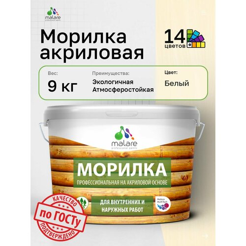 Морилка профессиональная Malare Professional для дерева, для любых деревянных поверхностей, акриловая, быстро сохнет без запаха, цвет белый, 9 кг: сравнение цен, характеристики, фото, актуальное наличие и цены.