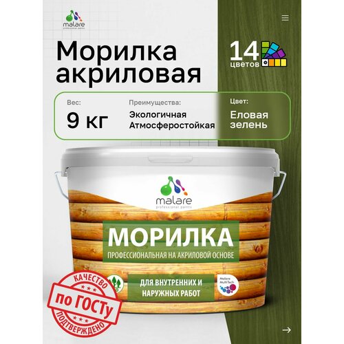 Морилка профессиональная Malare Professional для дерева, для любых деревянных поверхностей, акриловая, быстро сохнет без запаха, цвет еловая зелень, 9 кг: сравнение цен, характеристики, фото, актуальное наличие и цены.