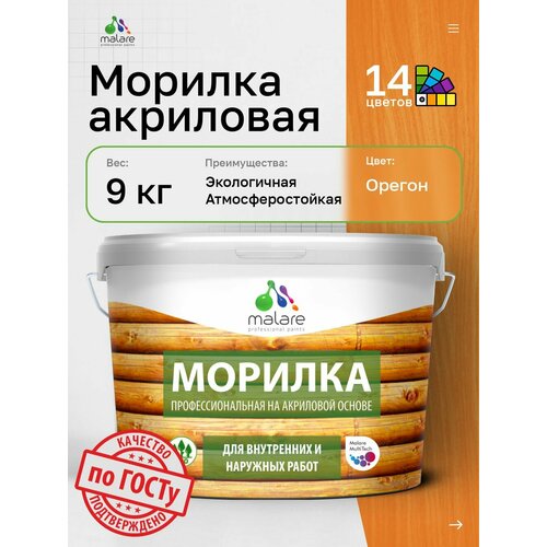 Морилка профессиональная Malare Professional для дерева, для любых деревянных поверхностей, акриловая, быстро сохнет без запаха, цвет орегон, 9 кг: сравнение цен, характеристики, фото, актуальное наличие и цены.