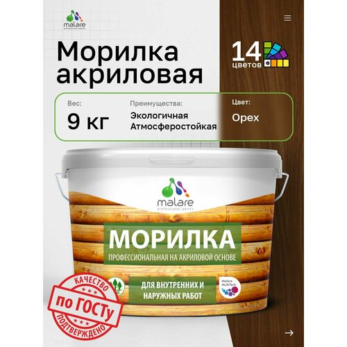 Морилка профессиональная Malare Professional для дерева, для любых деревянных поверхностей, акриловая, быстро сохнет без запаха, цвет орех, 9 кг: сравнение цен, характеристики, фото, актуальное наличие и цены.