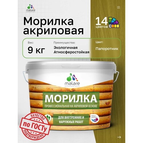 Морилка профессиональная Malare Professional для дерева, для любых деревянных поверхностей, акриловая, быстро сохнет без запаха, цвет папоротник, 9 кг: сравнение цен, характеристики, фото, актуальное наличие и цены.