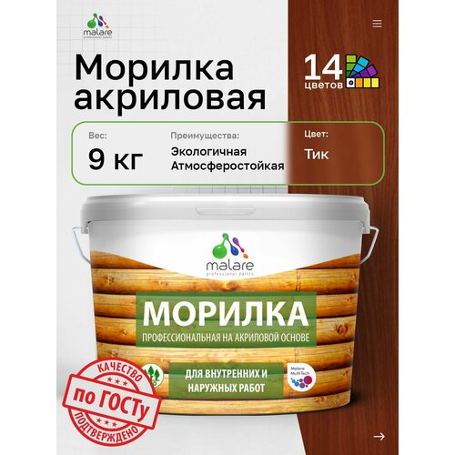 Морилка профессиональная Malare Professional для дерева, для любых деревянных поверхностей, акриловая, быстро сохнет без запаха, цвет тик, 9 кг: сравнение цен, характеристики, фото, актуальное наличие и цены.