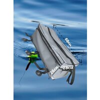 Сумка оснащена вместительным объемом, что позволяет разместить на борту судна все необходимые мелочи. Поперечные ручки убираются в карман, что делает возможным использование сумки отдельно от лодки. Две прорезиненные продольные ручки облегчают транспортировку и переноску.