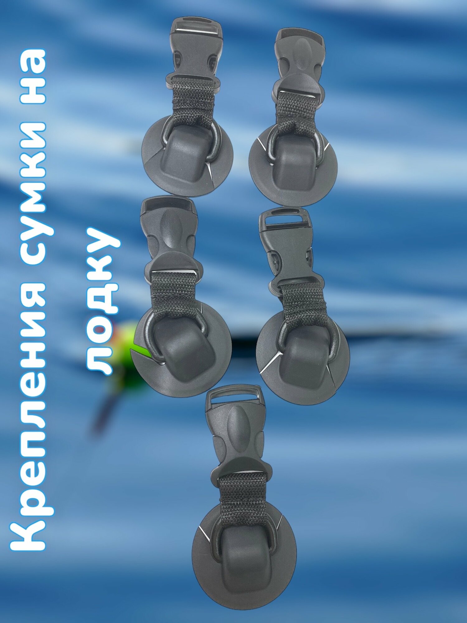 Молния сумки защищена клапаном от воды и брызг, что обеспечивает дополнительную защиту содержимого от непогоды. В комплектацию входит 6 рым-колец и клей для установки на надувную лодку.