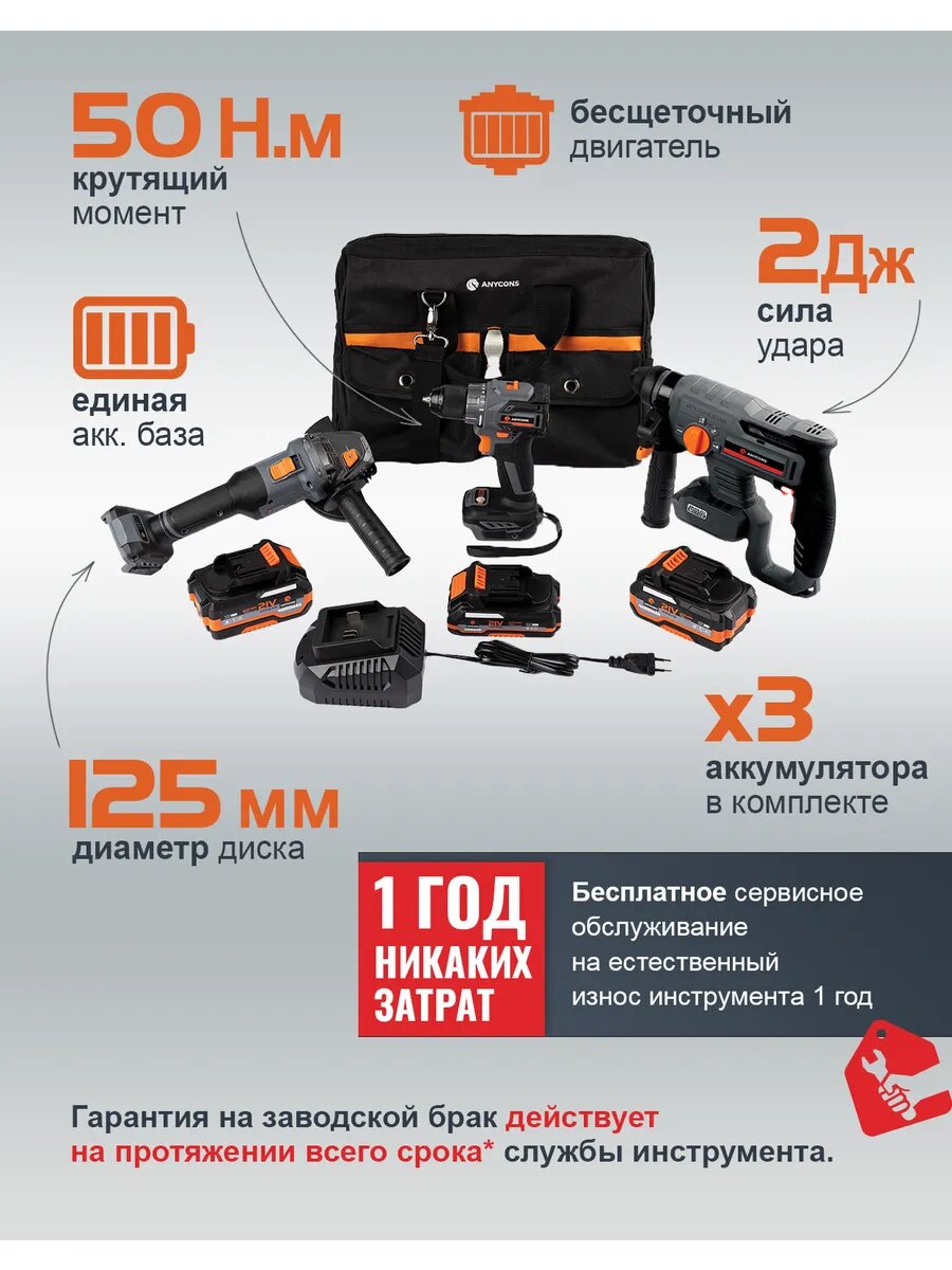 Маленький набор электроинструментов Anycons, 3 инструмента, сумка в комплекте: сравнение цен, характеристики, фото, актуальное наличие и цены.
