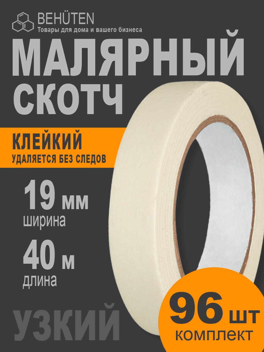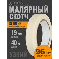 Малярная узкая клейкая лента 19 мм х 40 м от Behüten. Комплект 96 шт