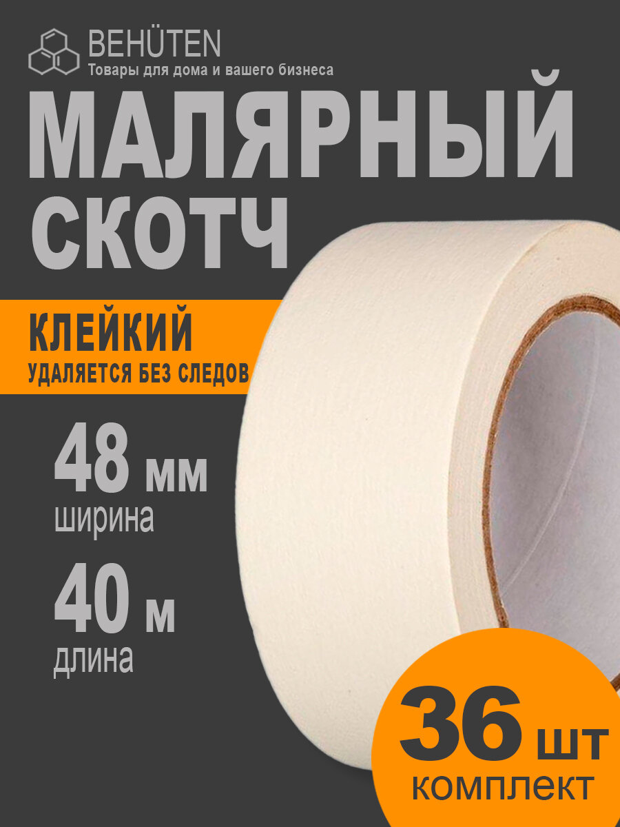 Малярная широкая клейкая лента 48 мм х 40 м от Behüten. Комплект 36 шт