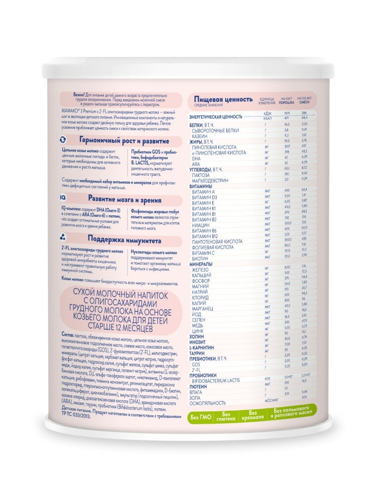 Мамако-3 premium напиток сухой на козьем молоке с олигосахаридами грудного молока 400 гр: сравнение цен, характеристики, фото, актуальное наличие и цены.
