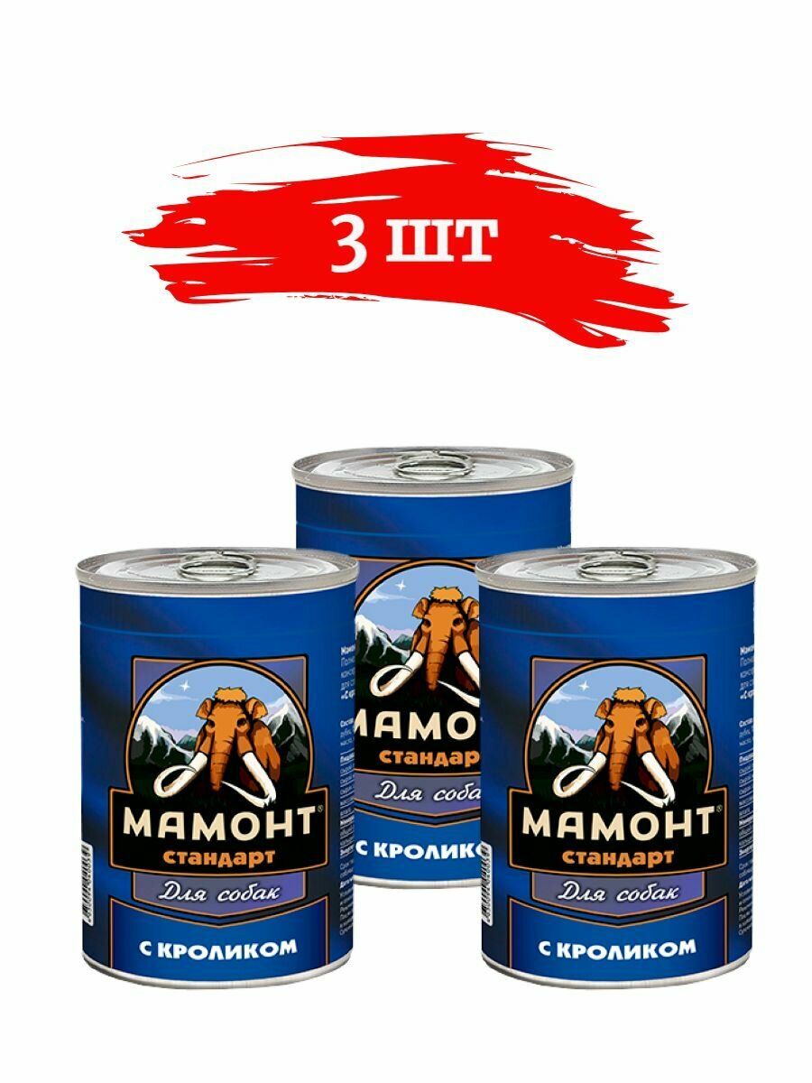 Мамонт Стандарт Кролик консервы для собак 970гр*3шт: сравнение цен, характеристики, фото, актуальное наличие и цены.