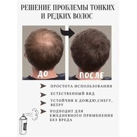 Средство отлично маскирует проплешины, рубцы на коже, редкие проборы, небольшие залысины, а также создает объем волосам. Продукт выпускается в разных оттенках, поэтому подобрать загуститель можно под любой натуральный цвет волос.